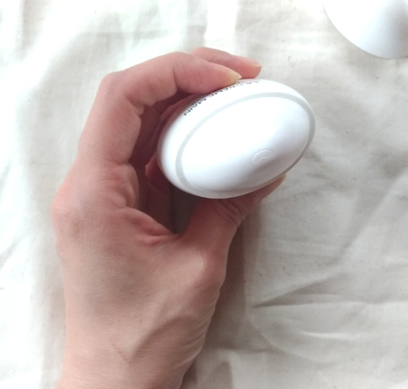 달걀 모양으로 되어있는데 위에 뚜껑부분을 뽑아내면 편하게 안에 담겨있는 로션을 짜내서 사용할 수 있어요
